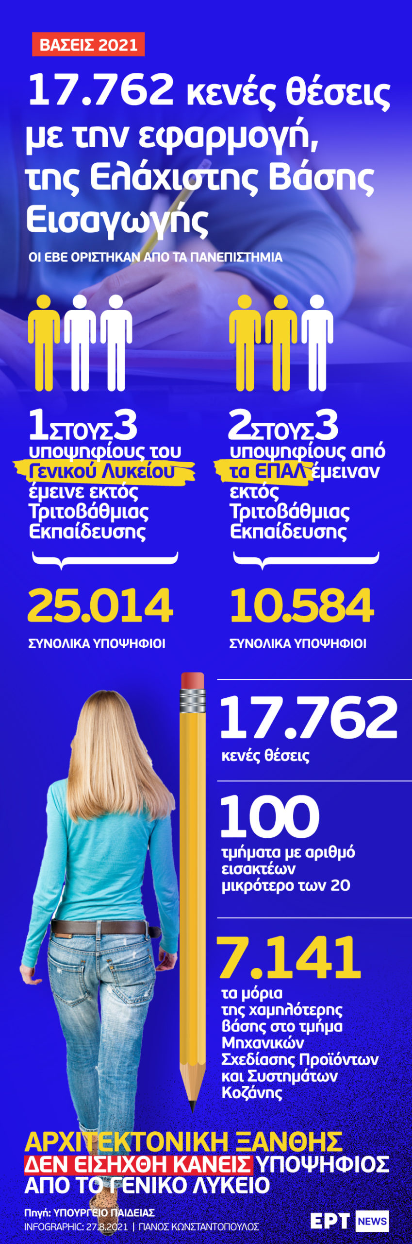 Infographic: 17.762 κενές θέσεις με την εφαρμογή της Ελάχιστης Βάσης Εισαγωγής