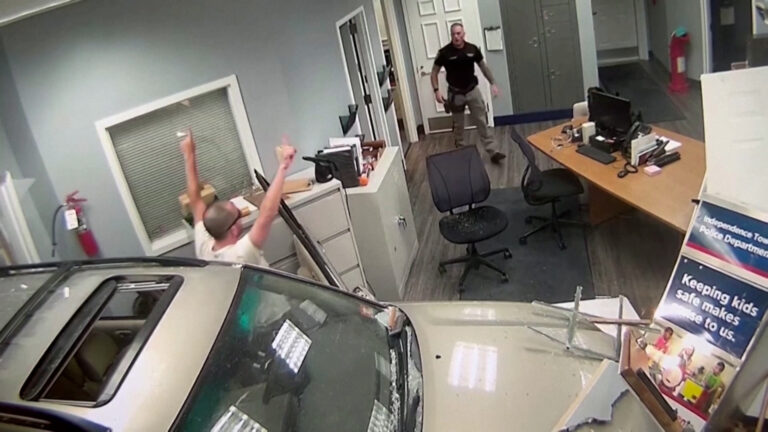 Η αστυνομία του Νιου Τζέρσεϊ έδωσε την Παρασκευή (29 Σεπτεμβρίου) στη δημοσιότητα βίντεο που δείχνει αυτοκίνητο τύπου SUV να «μπουκάρει» μέσα στο τμήμα και τον οδηγό να βγαίνει από αυτό με τα χέρια ψηλά. Από καθαρή τύχη γλίτωσε ένας αστυνομικός, ενώ προκλήθηκαν εκτεταμένες ζημιές.