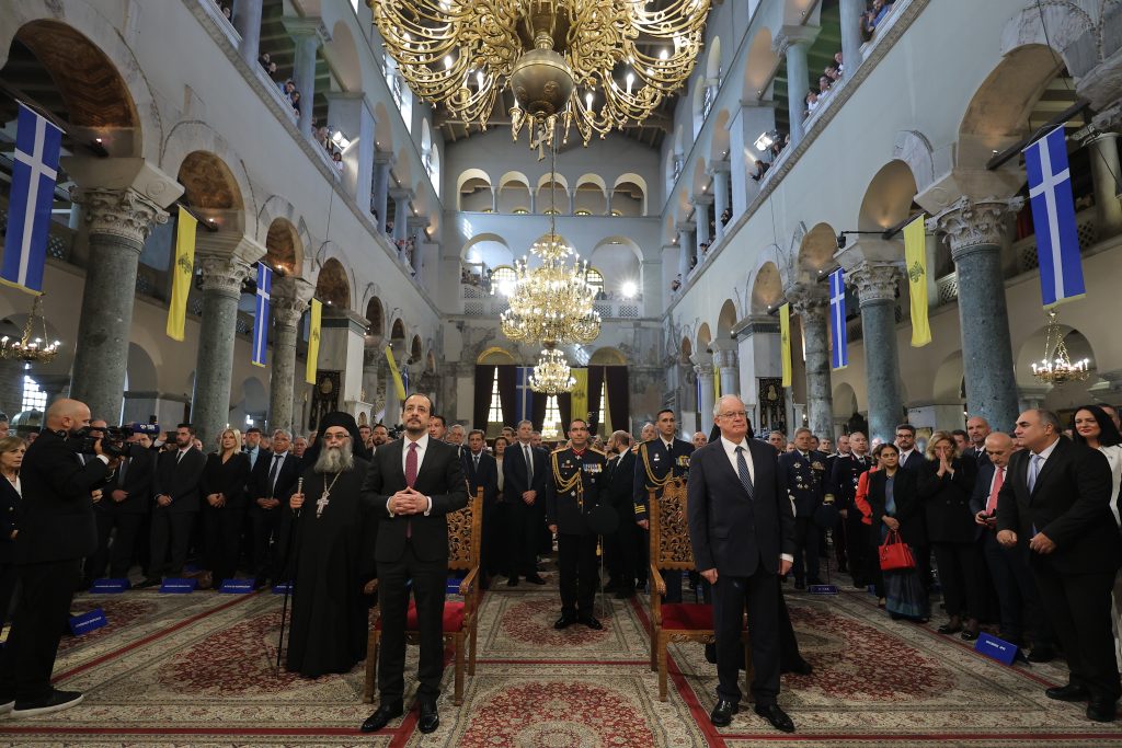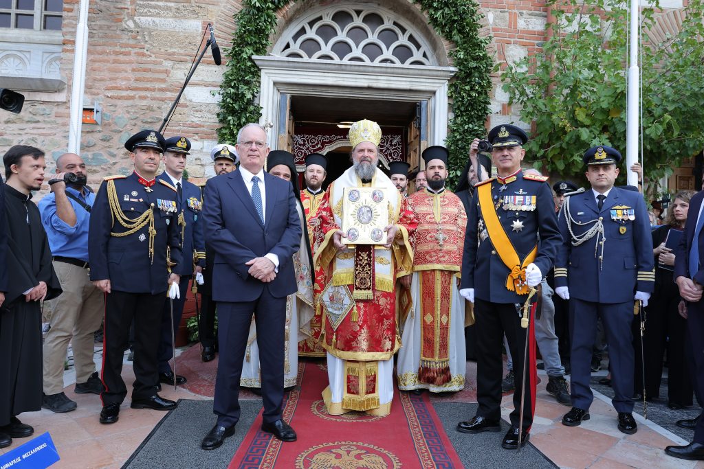 Με λαμπρότητα τελέστηκε η επίσημη δοξολογία στο ναό του Αγίου Δημητρίου, παρουσία του Προέδρου της Δημοκρατίας Κωνσταντίνου Τασούλα, για τον διπλό εορτασμό του Πολιούχου Αγίου Δημητρίου και της 113ης επετείου από την απελευθέρωση της Θεσσαλονίκης.