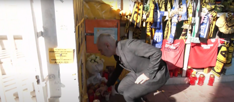Στο σημείο βρέθηκαν και οι γονείς του Άλκη, με τον πατέρα του, Αριστείδη Καμπανό, να στέλνει το μήνυμα «η θυσία του Άλκη ας αποτελέσει ένα νέο ξεκίνημα για τον αθλητισμό, με λιγότερη βία».