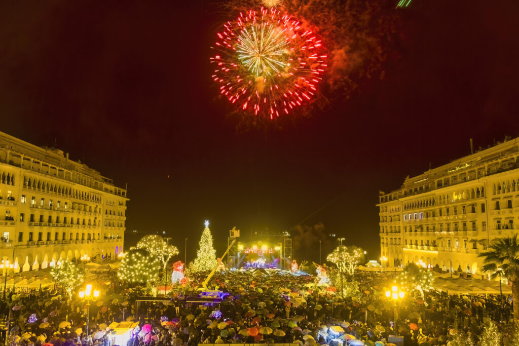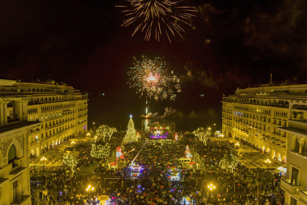 Μετά τη φωταγώγηση, τα πυροτεχνήματα φώτισαν στον ουρανό της πόλης, δίνοντας μια ακόμη εορταστική νότα.