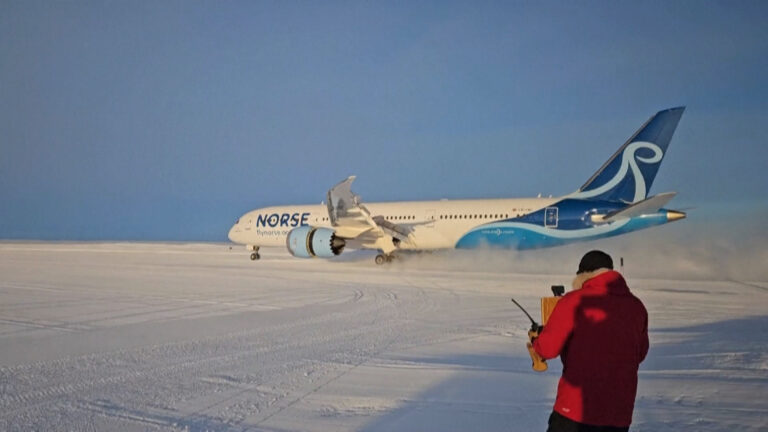 Πλάνα που δόθηκαν στη δημοσιότητα από το Νορβηγικό Πολικό Ινστιτούτο δείχνουν την προσγείωση ενός Boeing 787 στον πάγο της Ανταρκτικής, κάτι που, όπως υποστηρίζει το ινστιτούτο, γίνεται για πρώτη φορά για ένα τόσο μεγάλο αεροσκάφος στην περιοχή.